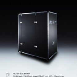 La malle est conçue pour s’ouvrir en moins d’une minute, se déplacer facilement et bénéficier d’une robustesse dans le temps grace à sa structure en titane et en carbone. Elle a été développée en collaboration avec la Maison Pinel & Pinel, et utilise un système d’ingénierie novateur breveté la rendant unique au monde.