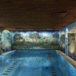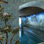 Cette photo montre une magnifique mosaïque murale réalisée par l’artiste Tuula Lehtinen, qui décore les murs du sauna appelé “Leila’s Garden” à Pikkupalatsi, dans la région de Tampere, en Finlande. La composition murale est constituée d’environ 500 000 tesselles vénitiennes Orsoni, et sa réalisation a nécessité 1 an et 1 jour à Tuula Lehtinen et à ses 8 collaborateurs.