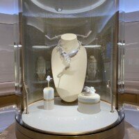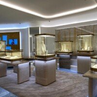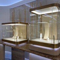 Chaque collection est mise en scène dans un écrin qui raconte à la fois la nature, la lumière et la féminité propres à la marque. De multiples savoir-faire sont utilisés pour évoquer de manière subtile et poétique le mouvement de l’eau et la réflection de la lumière singulière de la région du Kimberley où, dans la mer du Timor, grandissent les plus belles perles du monde. Parmi les animations des vitrines bombées, réalisées par Dinès, le relief de la côte est suggéré en arrière-plan par le tissage d’une maille métallique encapsulée. Dinès fournit également la tissage en abaca et métal encapsulé dans le verre des fonds de vitrines de l’ensemble du nouveau magasin.