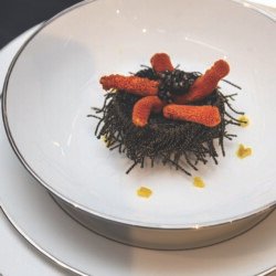 La soie reproduit les crevettes, le satin se transforme en homard et chaque tissu se mue en un plat gastronomique de la renaissance au XXI ème siècle. Prémices d’un art sollicité par les châteaux de renom, les vitrines, le théâtre, les clips les premiers aliments étaient pourtant juste destinés à agrémenter la dinette de ses filles. Un Saumon aux morilles de Ducasse avec une vielle veste imitant une peau de poisson fut l’élément déclencheur !
