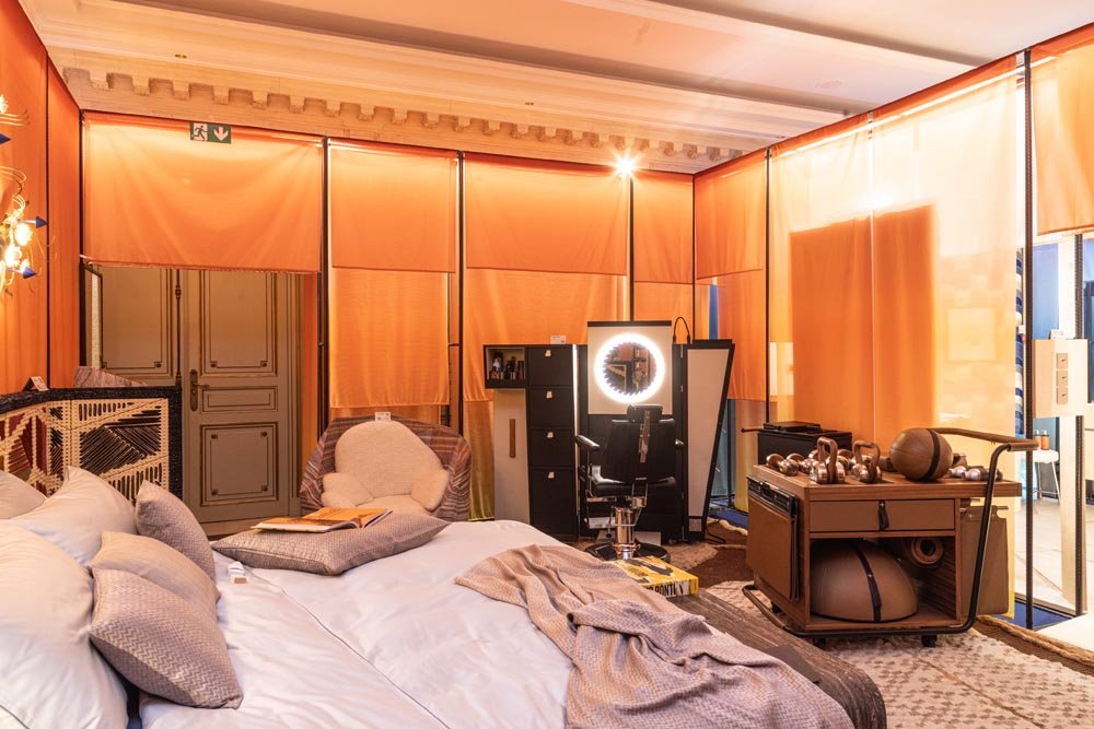 Imaginée par Fabrice Ausset pour l’édition 2023 du salon Hotel & Restaurant, la suite éphémère s’est imposée comme une véritable expérience immersive, à la croisée du design, de l’hospitalité et de l’émotion. Pensée comme un espace à vivre plutôt qu’un simple décor, elle traduisait une vision contemporaine du luxe : un luxe sensible, narratif, où chaque matière, chaque lumière et chaque détail participait à raconter une histoire. Loin des codes figés, cette suite proposait une interprétation audacieuse et chaleureuse de l’univers hôtelier, en mettant en avant le savoir-faire d’exposants sélectionnés avec exigence.